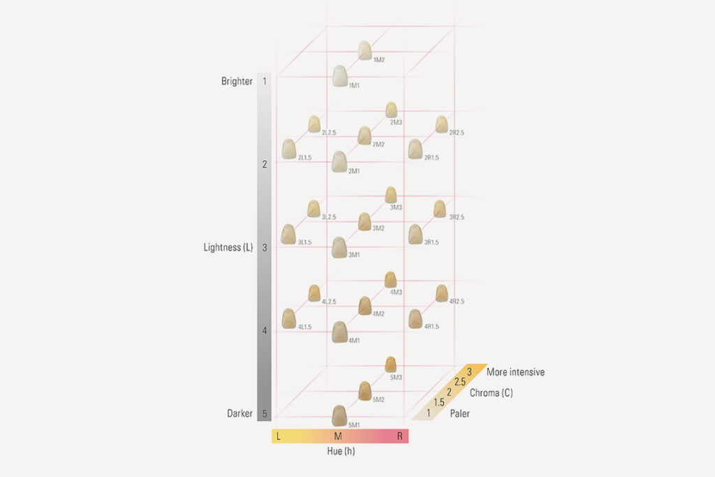 Sistemul 3D-Master nu se limitează la nuanțe simple; el ține cont de luminozitate, ton și saturare, pentru a crea o potrivire naturală și armonioasă cu dinții tăi. Aceasta înseamnă că restaurările nu se vor evidenția artificial și vor arăta exact ca dinții tăi naturali, chiar și în lumină diferită sau la fotografii.